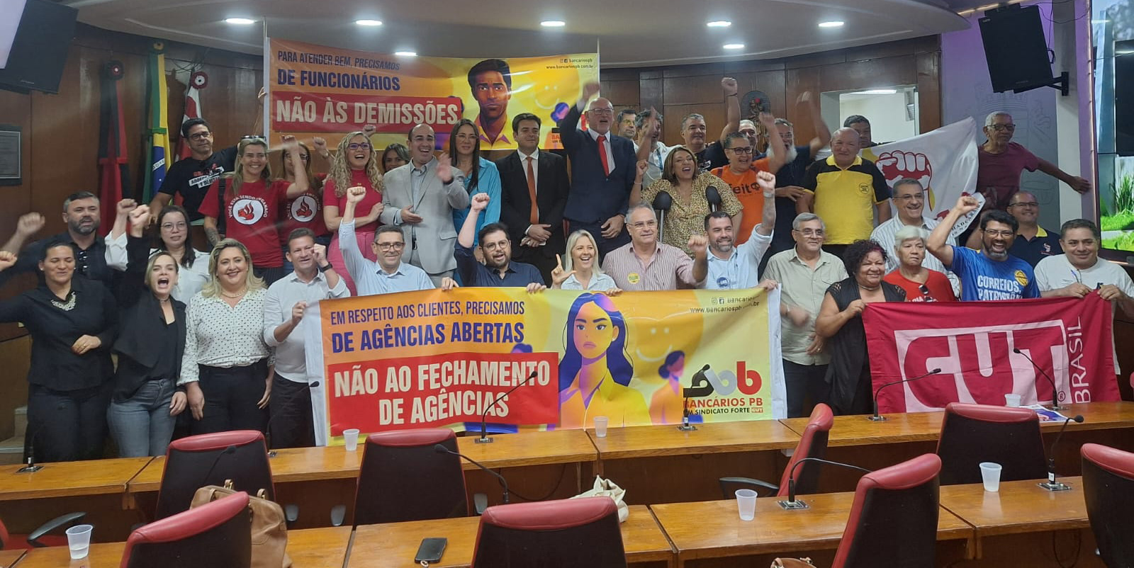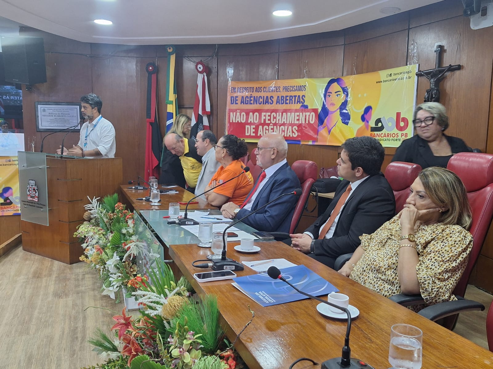 A Fetrafi/NE marcou presença na sessão especial realizada nesta quarta-feira (24), na Câmara Municipal de João Pessoa (CMJP), que discutiu o fechamento de agências bancárias e o alto número de demissões no setor financeiro. A atividade, proposta pelo vereador Marcos Henriques (PT), foi realizada em conjunto com a Assembleia Legislativa do Estado da Paraíba (ALPB), representada pela deputada Cida Ramos (PT), e contou com a participação de diversos dirigentes da Federação, reforçando o compromisso da entidade na defesa da categoria e da população.